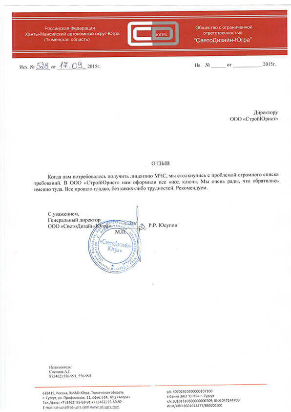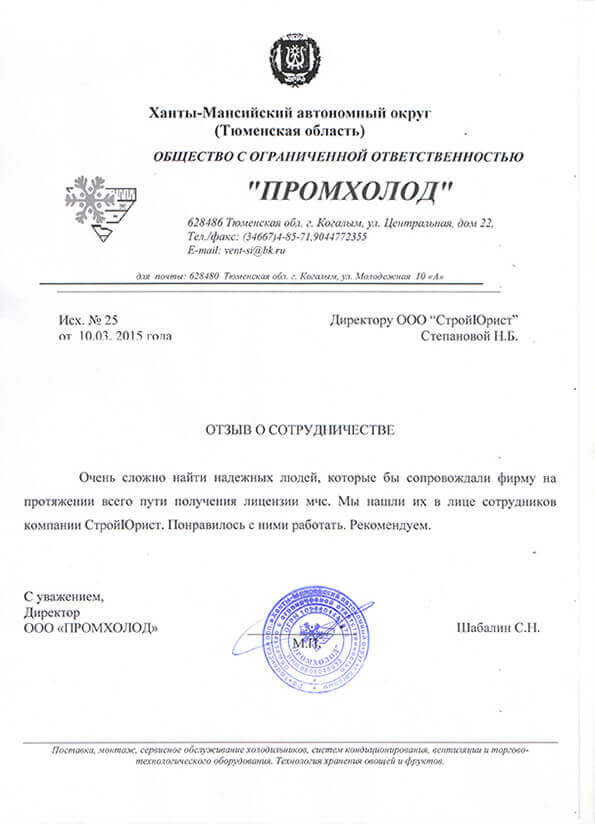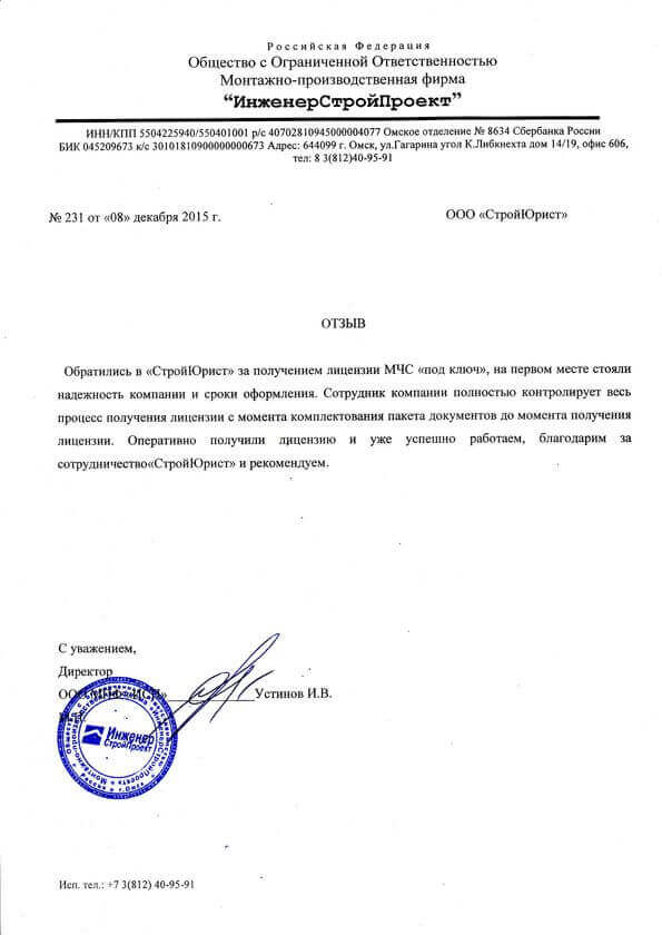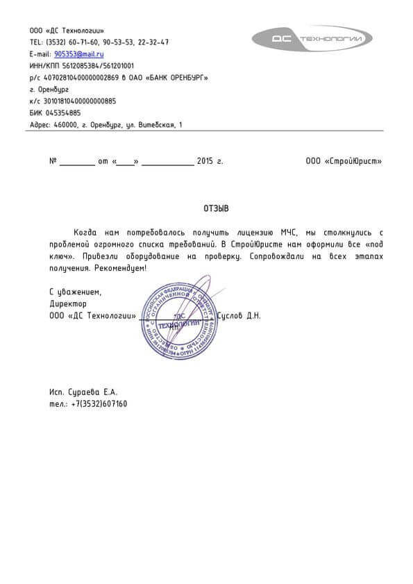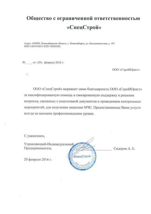 Отзывы клиентов "СтройЮрист" по лицензированию МЧС в Новочеркасске