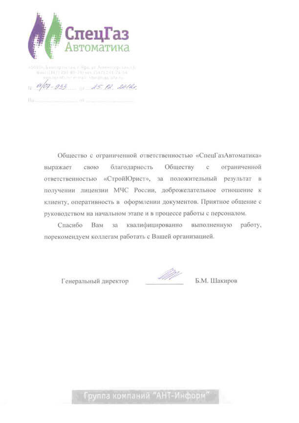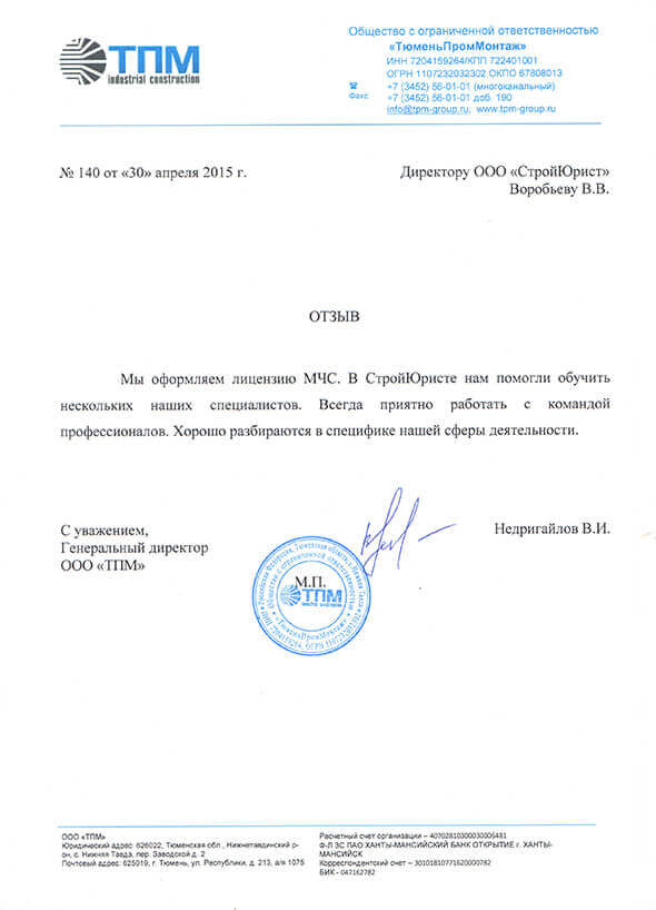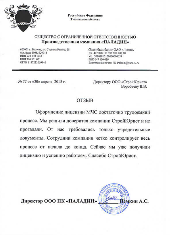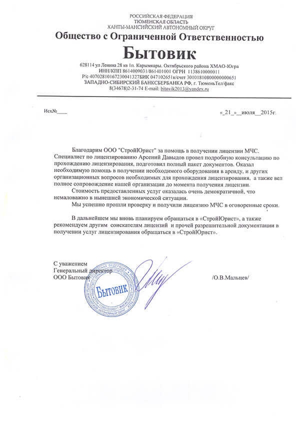 Отзывы клиентов "СтройЮрист" по лицензированию МЧС в Новочеркасске
