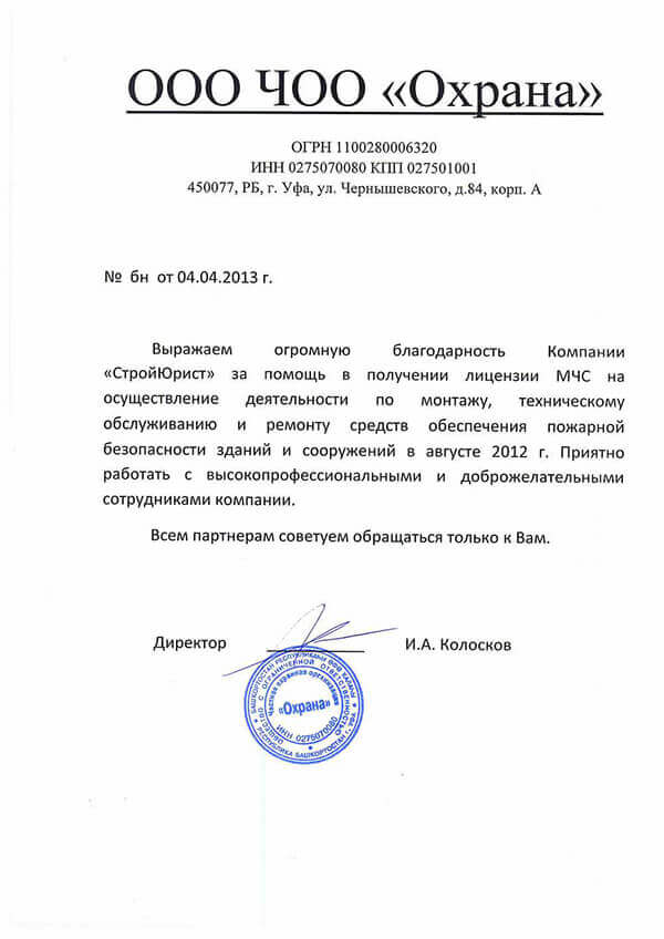 Отзывы клиентов "СтройЮрист" по лицензированию МЧС в Новочеркасске