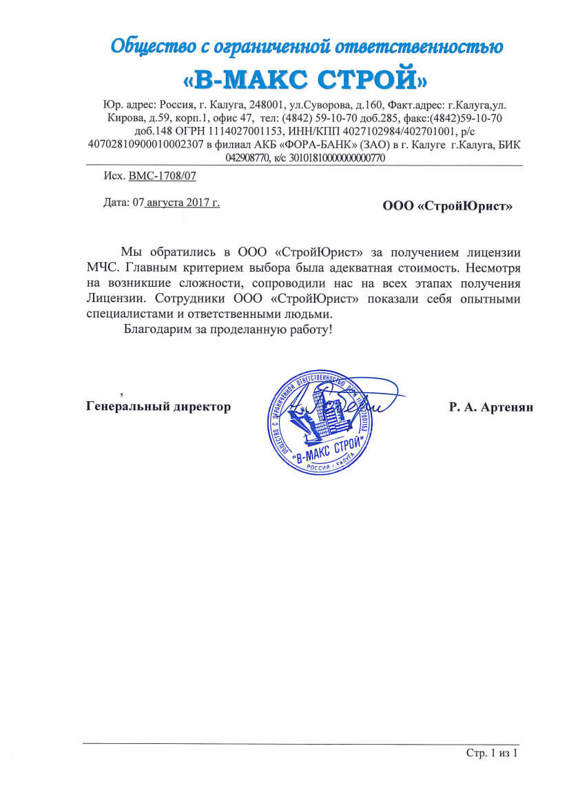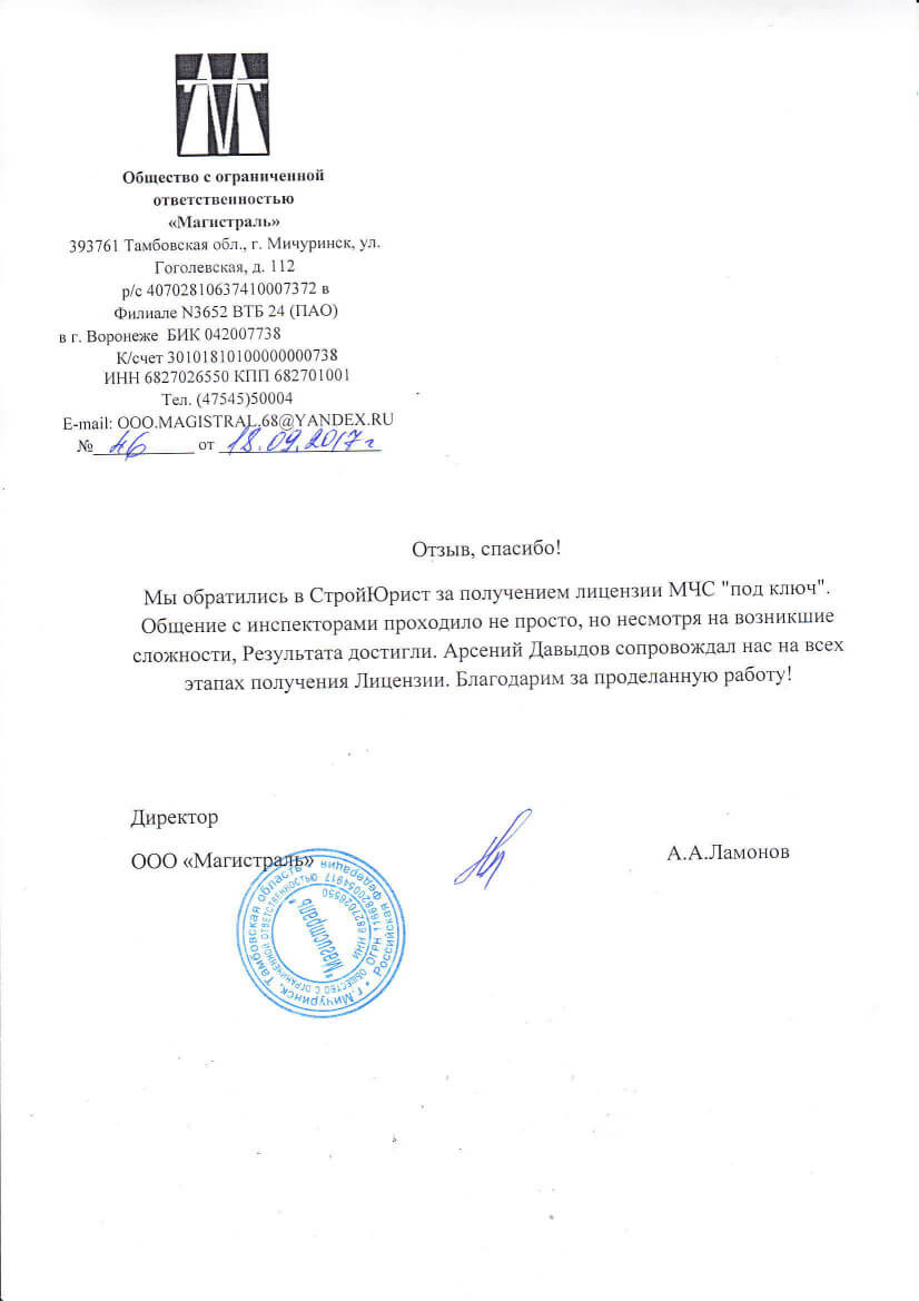 Отзывы клиентов "СтройЮрист" по лицензированию МЧС в Новочеркасске