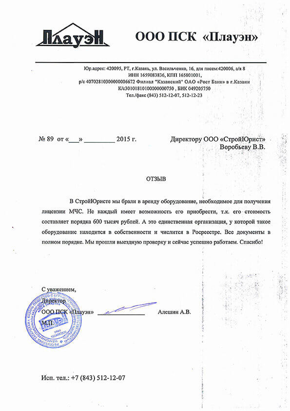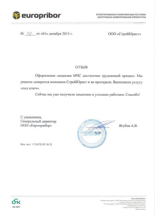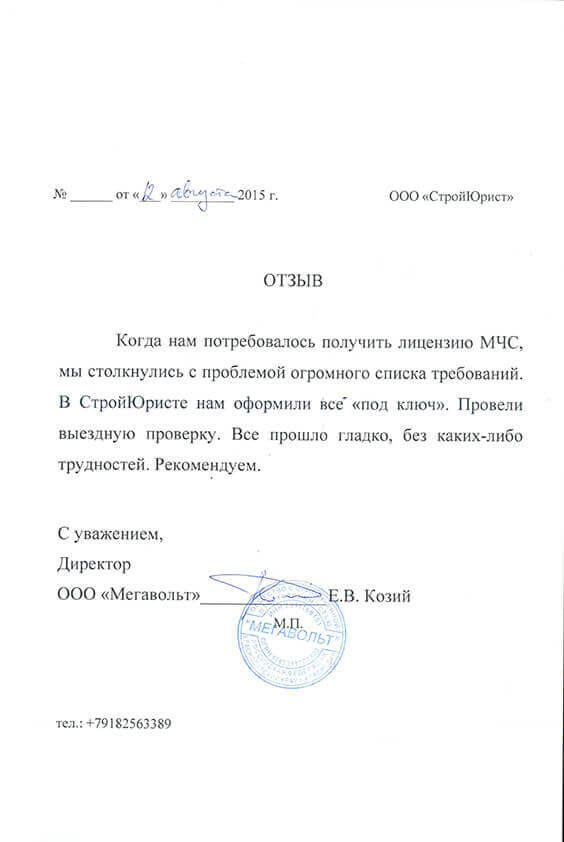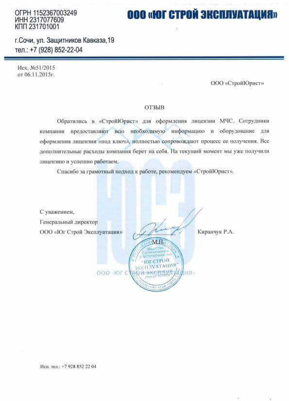 Отзывы клиентов "СтройЮрист" по лицензированию МЧС в Новочеркасске