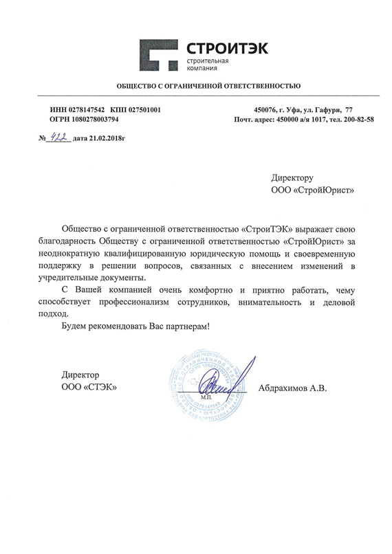 Отзывы клиентов "СтройЮрист" по регистрации фирм в Новочеркасске